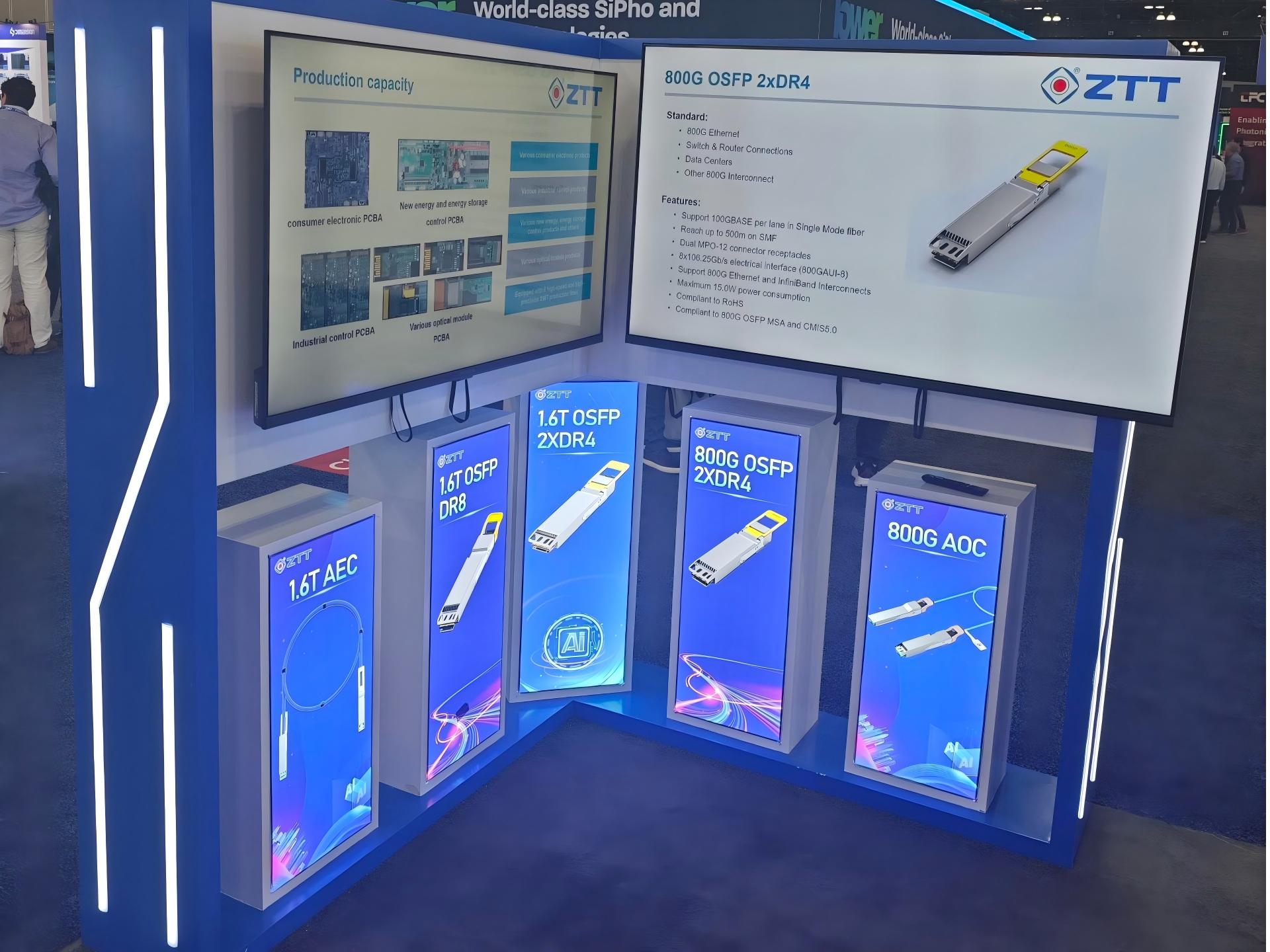 We also highlighted our latest high-speed modulation chips, leveraging silicon photonics and thin-film lithium niobate technologies to deliver higher integration and lower power consumption.